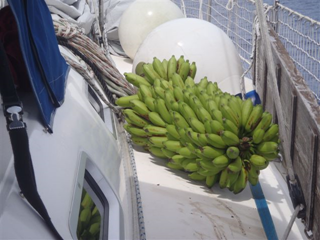 Klemen se je dodatno v zadnjih dneh odločil še za bananino ločevalno dieto, saj nama je poglavar otoka Woleai ob odhodu za popotnco dal velik strok banan, ki sedaj dozorevajo na krovu Skokice in jim Klemen zagotovo sproti ne bo kos.
