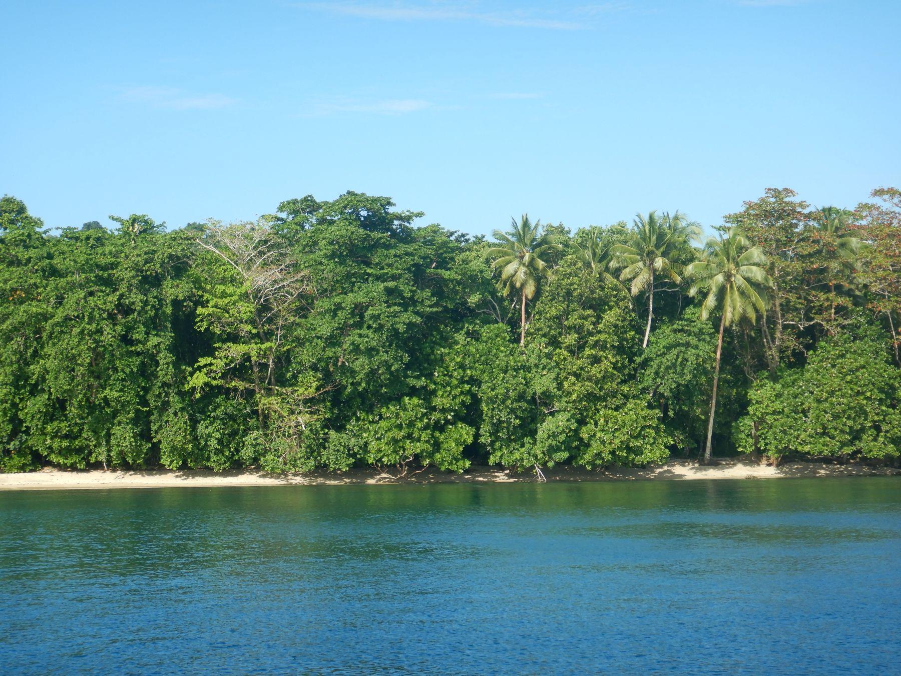 Pri rendžerjih plačaš vstopnino in se z vodiči dogovoriš za ogled otoka. Žal v laguni na južni strani otoka ne dovolijo sidranja, zato sva sidrala na severni strani otoka in želela od najinega zaliva do rendžerjev priti po gozdni poti čez otok. Našla sva stezo, ki je s plaže vodila v notranjost otoka in po njej skozi goščavo hodila kakšen kilometer, potem pa se je pot na poseki končala in nisem našel nadaljevanja. Vrnila sva se v zaliv in se potem s čolnom odpeljala nekaj milj okoli severozahodnega rta na drugo stran otoka do eko naselja in rendžerjev, s katerimi smo se dogovorili za ogled krokodilov in tropskega gozda.