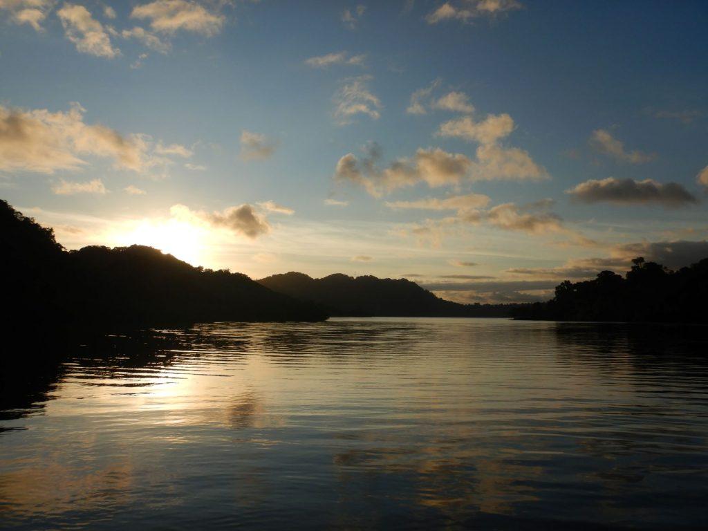 Najprej smo se z vodičem kar z našim gumenjakom odpravili ob obali do zalivov, kjer se nahajajo krokodili. Vodič nama je rekel, da imajo krokodili tukaj dovolj hrane in ne napadajo ljudi, pa vendar je bil občutek čuden, ko smo šli z gumenjakom na srečanje s krokodili.