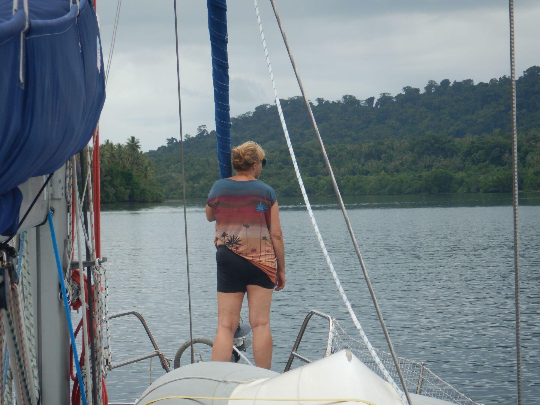 V nedeljo sva z Zlato odjadrala proti laguni Marovo na zahodu otoka New Georgia, a mi ni uspelo priti v laguno. Z juga Pacifika so se valili dolgi oceanski valovi in so se na prehodu čez greben krepko povišali in se potem še dvesto metrov valjali in penili po plitvini. Na navtični karti je bila na prehodu v laguno napisana globina med 8 in 10 metri, globinomer na barki pa mi je začel kazati globino pod petimi metri, zato sem se ustrašil in barko obrnil ter pobegnil iz razpenjene vode. Nato sem poskusil še enkrat malo stran na drugem mestu in takrat je poleg morja popenila še Zlata in me nadrla, da sem še enkrat obrnil barko in pobegnil z grebena. In potem sva nekaj ur jadrala ob grebenu in okoli grebena. Oceansko valovanje je bilo neizprosno in nisem našel varnega prehoda, zato sem na navtični karti poiskal nov cilj. Konec popoldneva sva pristala v zavetju otoka Tetepare. Čez opevano laguno Marovo sva naredila križ, upam pa, da nama bo jutri uspelo narediti kljukico vsaj na prav tako opevanem otoku in narodnem parku Tetepare. Tukaj pred krokodili menda ne strašijo, temveč vodiči goste odpeljejo do krokodiljega jezera, da si jih lahko od blizu ogledajo – krokodili goste in gostje krokodile.