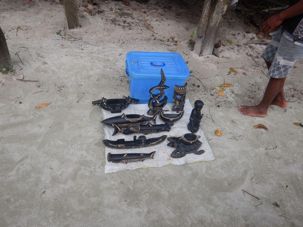 Med uradne zadeve ob obiskih vasi na Salomonovih otokih sodi tudi ogled in nakup različnih ročnih izdelkov, nakita iz koral in školjk ter različnih tradicionalnih rezbarij in drugih spominkov. Nekaj lesenih mask in iz lesa izrezljanih rib, morskih psov in želv je našlo pot na Skokico.