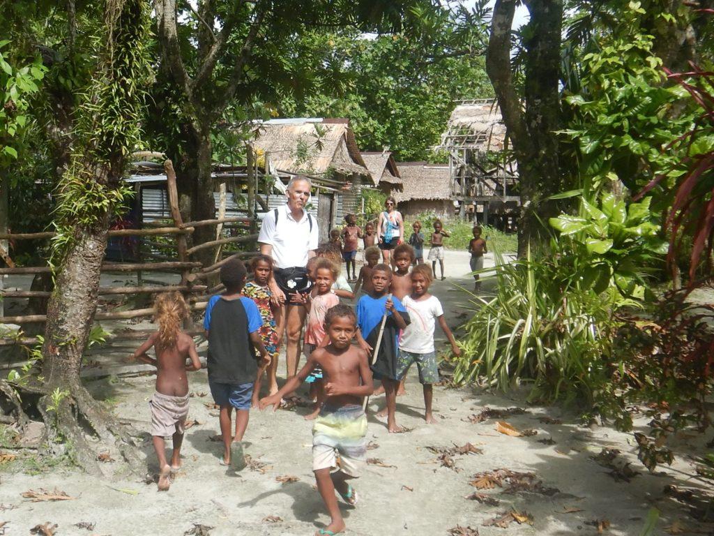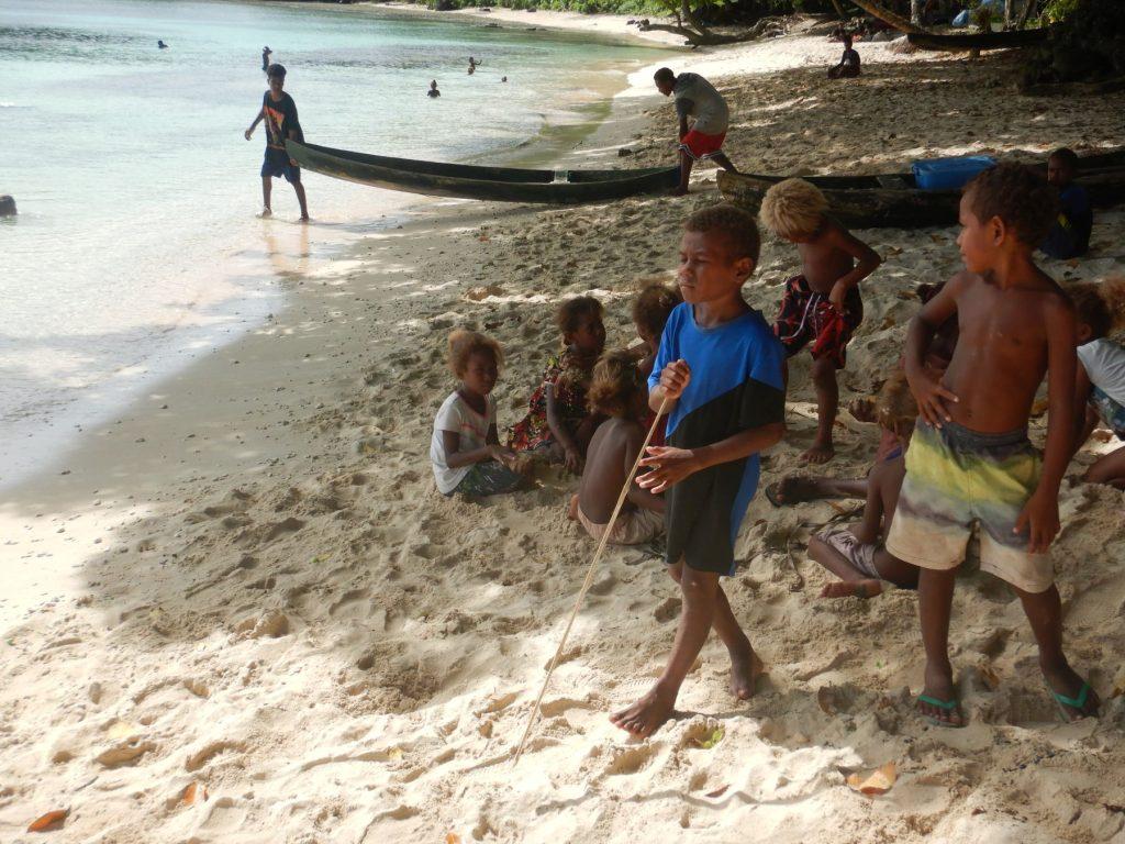 Na hribu nad vasjo imajo pri izviru potoka narejeno zajetje in od tam v vas speljan vodovod in na katerem so na vsakih nekaj deset metrov nameščene pipe, kjer se domačini oskrbujejo z vodo za pitje, kuhanje in umivanje. Z Robertom sva pod večer v nekaj vožnjah s čolnom od pipe vaškega vodovoda do barke v kanticah znosila vodo in jo pri poglavarju plačala s prispevkom v vaški proračun, potem pa smo se z barko preselili v oddaljenejši del zaliva, da smo se rešili glasne in vse bolj nadležne družbe vaških otrok v kanujih. Obisk jadrnice je za njih dogodek, a nismo se dobro počutili v vlogi cirkuških medvedov.